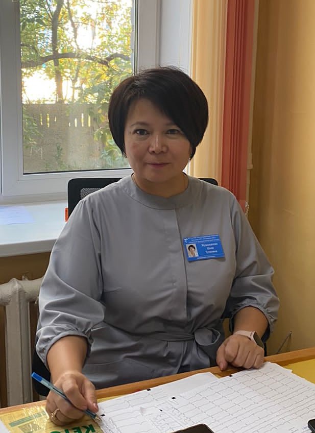 Жумажанова Шнар Тулеовна — заведующая отделением функциональной диагностики, врач высшей категории. Стаж работы 25 лет.